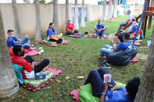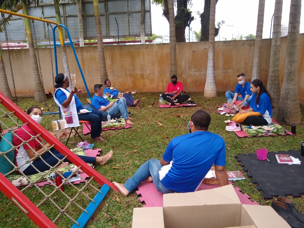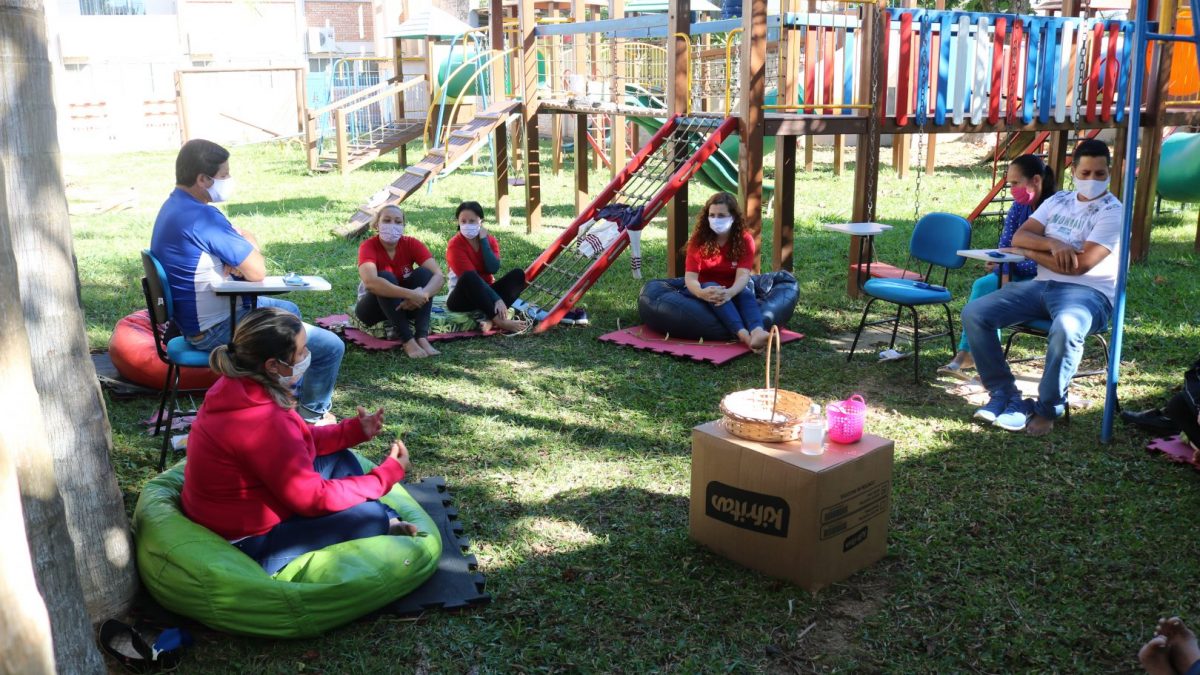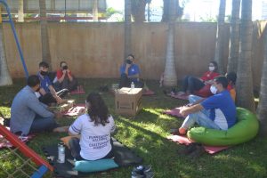 Nas últimas semanas, os educadores e funcionários do Parque Dom Bosco participaram de uma intervenção terapêutica, um momento diferente organizado pelos psicólogos da instituição, André e Elizabeth. Divididos em quatro grupos e em diferentes dias, de forma a reduzir o tamanho dos grupos e evitar aglomerações, os colaboradores puderam parar e refletir um pouco sobre o momento em que vivemos, e como cada um está lidando com diferentes situações.
