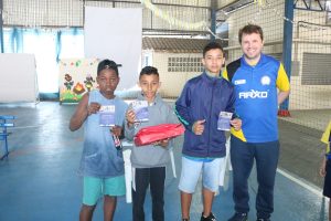 Os vencedores do tênis de mesa foram os educandos: Pedro Henrique do Carmo, no período matutino e Matheus Schaefer, à tarde.